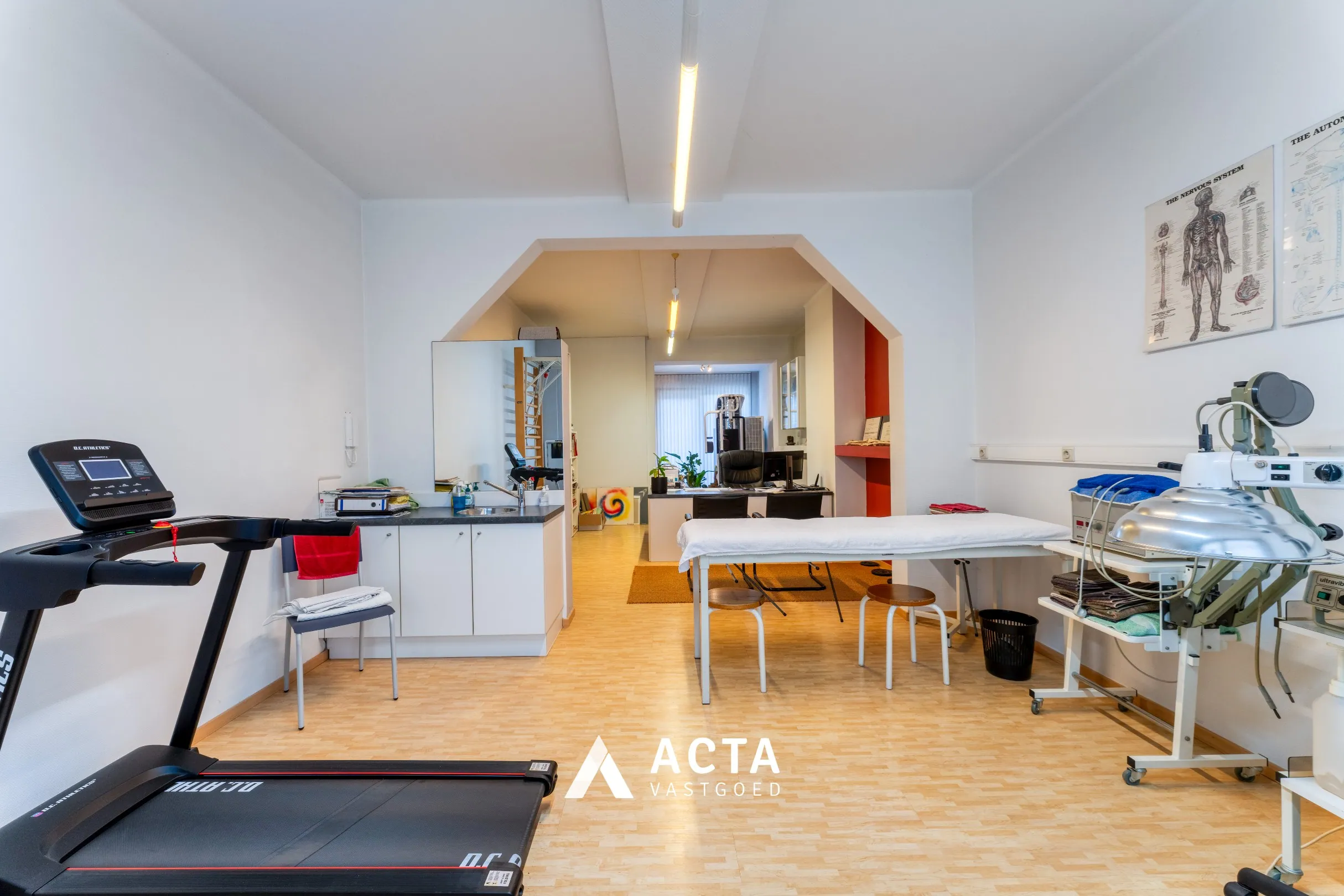 De ruime inkomhal geeft toegang tot een grote multifunctionele ruimte, ideaal voor praktijk, kantoor of hobbyruimte. Achteraan bevindt zich een berging met toilet. Vanuit deze verdieping heb je rechtstreeks toegang tot de zonnige tuin met terras.
